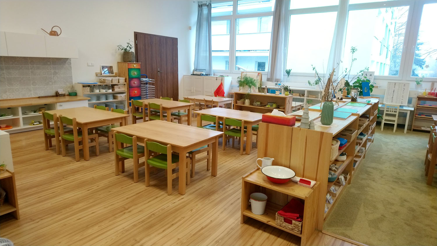 Dvě třídy – každá s kapacitou 12 dětí a 2 průvodkyněmi. Připravené Montessori prostředí pro děti od 18 měsíců do 3 let.